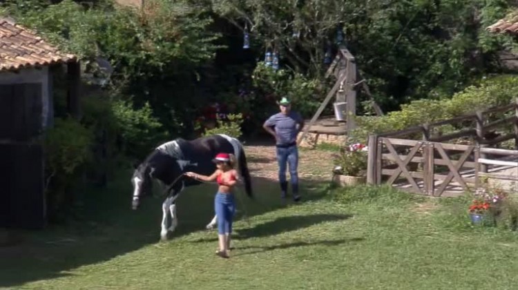 Sthefane passeia com o Colorado na área dos animais - A Fazenda 13