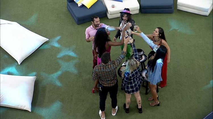 "Esse é o Big dos Bigs", fala a Líder Pocah. "Big dos Bigs... A gente veio para cá passar por coisas que a gente jamais imaginou e vamos embora", grita a influenciadora digital. Todos, então, brindam.