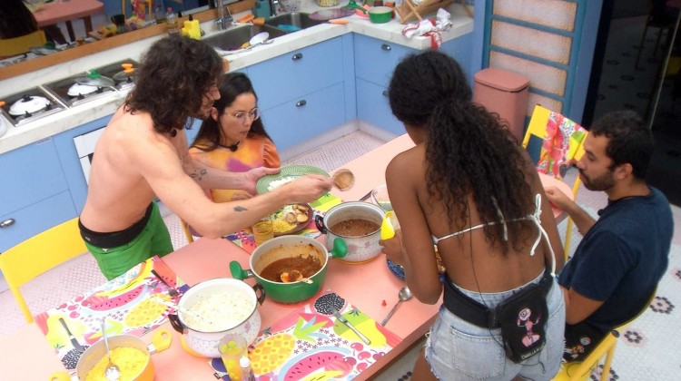 Brothers se reúnem na cozinha da Xepa, da casa do BBB21, para, finalmente, almoçarem o que Fiuk preparou para eles esta tarde. Enquanto se serviam, inclusive da maionese que o ator e cantor preparou, Juliette diz: "Delícia, Fiuk". O artista responde com um "Uau". "Tudo que vem dele é uma delícia, não é Fiuk", emenda Gilberto. O brother confirma, sorrindo. Camilla de Lucas, que também está com o trio, também se serve. "Ai, nossa Xepa", fala o pernambucano. "A Xepa vigora", completa o ator.
