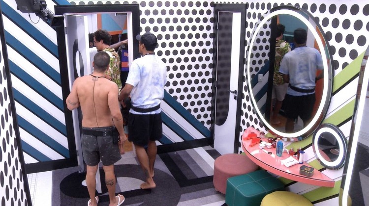 Após receberem o comes e bebes para o esquenta desta noite, os brothers são surpreendidos com o alerta sonoro da casa do BBB 22 e pegam os looks para a última festa da edição.