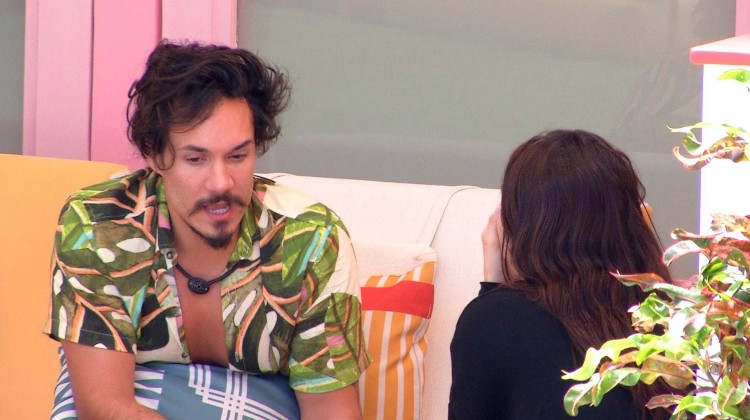 Na área externa do BBB 22, Eslovênia e Eliezer conversam sobre esquema de jogo o votação de hoje à noite. "Vai depender muito dinâmica", diz o designer. "Uma coisa é óbvia. A gente tem que pensar em alguém do quarto. A opção que eu quero que vá, é ela porque é uma ameaça. Tenho certeza que se tiver Contragolpe, ela me chama", especula a modelo.
