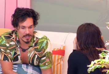 Larissa acorda para cumprir o Castigo do Monstro e conversa com Tiago Abravanel na sala, único aco...