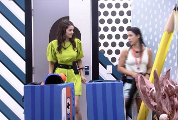 . A influencer vai até a despensa com a ajuda de Eslovênia. Depois ela e a médica colocam as fant...