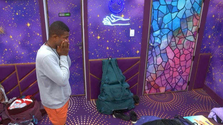 Após conversa com no Quarto Magia do BBB 24, desce chorando para cozinha da casa. Minutos antes, o motorista de aplicativo desabafou com a dançarina por causa dos últimos acontecimentos na casa.