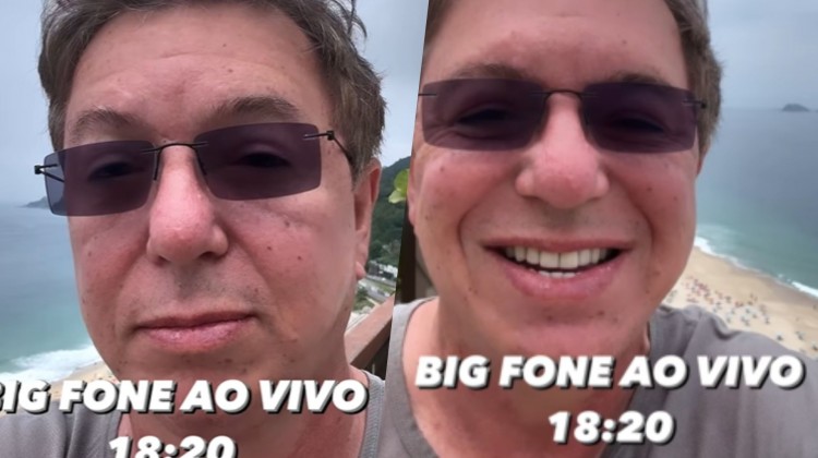 "Bom dia! Hoje é dia de Big Fone, 18h20. E a gente fica aqui. Está rolando um pagodinho no trio elétrico aqui em São Conrado. Muito bom", diz o diretor de gêneros e variedades.